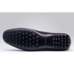Mocassin Dandy en Veau Velours sans lacet comportant une languette sous patte et généralement à plateau.