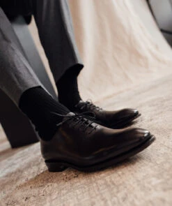 Finsbury, spĂ©cialiste de la chaussure richelieu en cuir de luxe, vous propose une chaussure pour homme Ă©lĂ©gante et raffinĂ©e, le modèle Giulia noir. Une chaussure en cuir de grande qualitĂ©, patinĂ© Ă la main, dans la pure tradition de cette marque de standing. La Giulia noir nous rappelle que la richelieu one-cut est la chaussure pour homme la plus racĂ©e qui soit. Ses lignes pures et ses superbes finitions, la patine dorĂ©e rehaussĂ©e par la couleur marron des lacets et des semelles, en font un modèle incontournable. Les chaussures Giulia noir sont sobres, mais sophistiquĂ©es. Dans le style des chaussures en cuir italiennes, ces chaussures de ville vous donneront une allure de dandy moderne. Le confort n’est pas laissĂ© de cĂ´tĂ© avec un cousu Goodyear qui laissera de la place pour vous sentir bien dans vos chaussures.